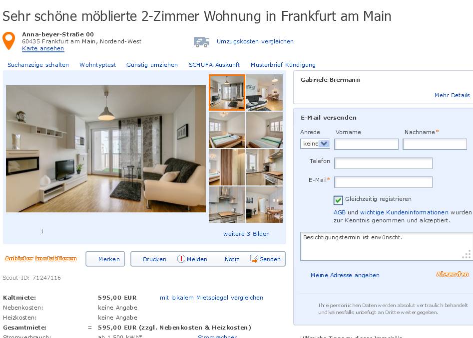 Die Hausfront mit Balkon liegt zur Südseite, die Nordseite befindet sich am Feldrand mit Ausblick nach Offenbach. Wohnungen mieten Frankfurt am Main, Mietwohnungen Frankfurt am Main, Wohnungsangebote vom Makler und von privat: Wohnungen, WGs, Zimmer Auch einige Wohnblocks mit zahlreichen Wohneinheiten bieten günstigen Wohnraum. Bei wohnungsboerse.net finden Sie ein großes Angebot an attraktiven Wohnungen in Frankfurt jeder Preisklasse!